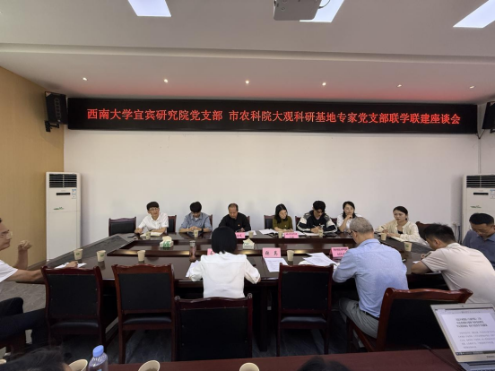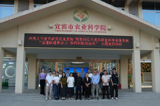 10月15日下午,西南大学宜宾研究院党支部与宜宾市农科院大观科研基地专家党支部联学联建开展“党建联建聚合力,协同创新促振兴”主题党日活动。两个党支部的党员同志齐聚市农科院大观科研基地,通过实地参观、集中学习和交流研讨,探索党建与农业科技深度融合的新路径。市农科院党委书记、市农业农村局党组副书记张英、市农科院党委委员、副院长詹映红、宜宾研究院院长陈金凤及双方党支部党员同志参加了活动。