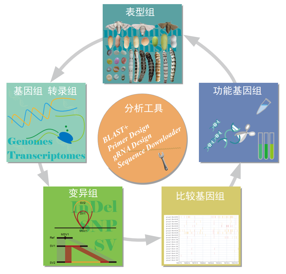 在现代蚕学研究和育种实践中,泛基因组序列和多组学数据已经成为科学家手中不可或缺的基础资源,可以缩短研究和育种的时间,显著提高工作效率。然而,多组学大数据的整合分析和使用具有成本高、技术难度大的特点。