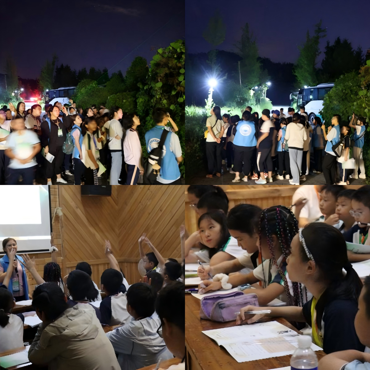 晚间,师生开展天文观测活动,学习辨认北斗七星、北极星、牛郎织女星等星座,绘制星座图,感受宇宙浩瀚。随后进行科学总结与思维拓展,就“人类活动对地理环境的影响”等议题展开讨论。最后,师生们共同观看了短视频《科研报国 教书育人:袁道先先生的科学家精神》。