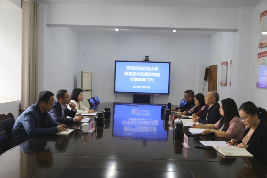 黄斌表示,渝东南农科院具有悠久历史,资源丰富,科研成果突出,为地方经济社会发展做出了重要贡献;涪陵研究院同属科发院党委,也是学校的异地科研机构;两个单位同气连枝,共谋发展。他指出,要坚持党建引领,把政治建设摆在首位,充分发挥基层党组织战斗堡垒作用和党员先锋模范作用,切实把组织优势转化为攻坚克难的发展优势,不断推动农业科技实现新突破。他表示,科发院将认真梳理我院提出的问题与建议,围绕资金支持、项目布局、人才引育和创新平台建设等方面进一步加大统筹与扶持力度。他希望双方以党建为纽带,构建常态化、机制化的协同联动体系,推动科技创新与产业需求深度融合,紧密对接市域经济发展规划与产业布局,共同促进科研成果高效转化与应用落地,携手开创科产融合新局面,为区域农业高质量发展持续注入强劲科技动能。