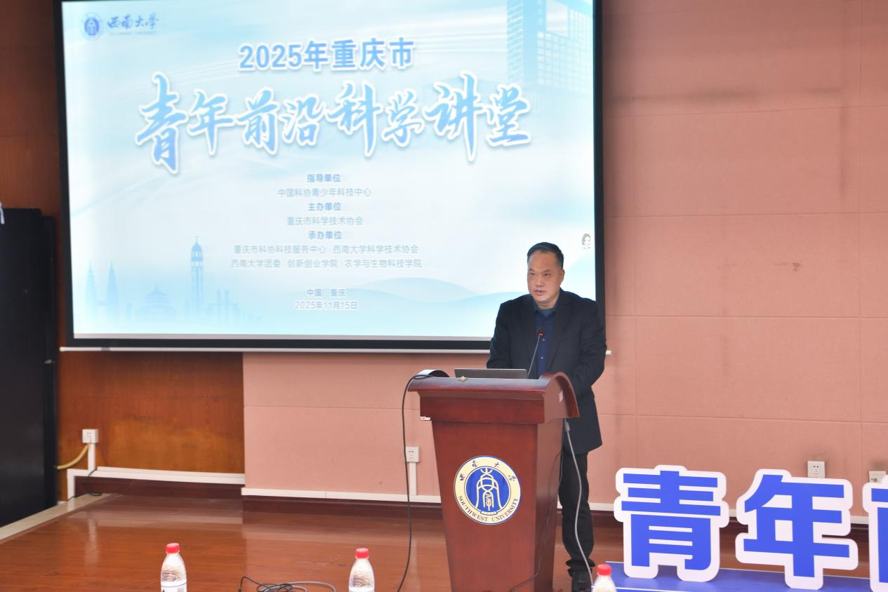 11月15日上午,由重庆市科学技术协会主办,西南大学科学技术协会等单位承办的2025年重庆市“青年前沿科学讲堂”活动在西南大学隆平楼204报告厅隆重举行。重庆市科协科技服务中心党总支书记、主任郑吉安出席活动并致辞,西南大学科学技术发展研究院、科协相关负责人及校内科技社团成员、研究生和教师代表300余人参加活动。活动由科学技术发展研究院副院长曲存民教授主持。