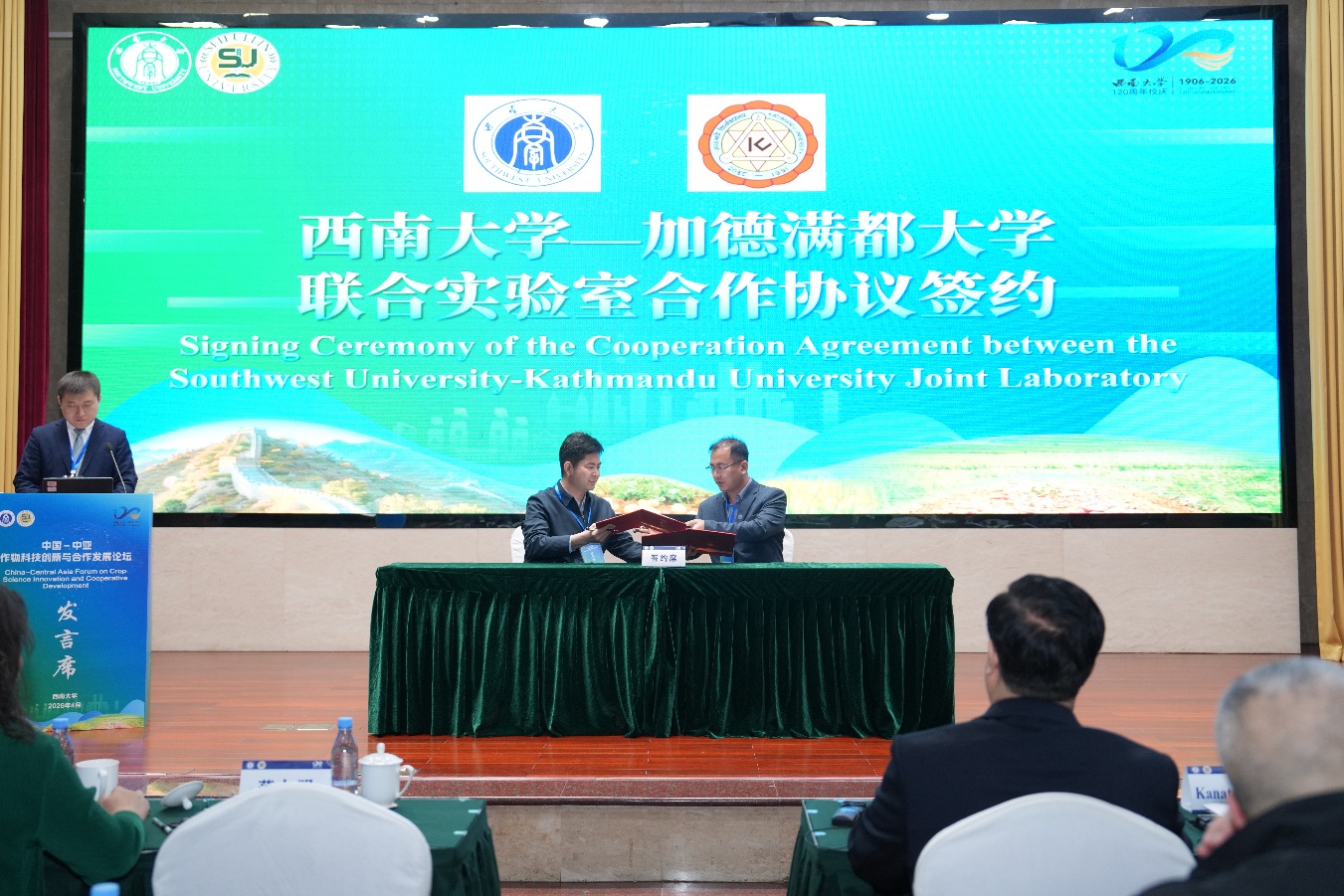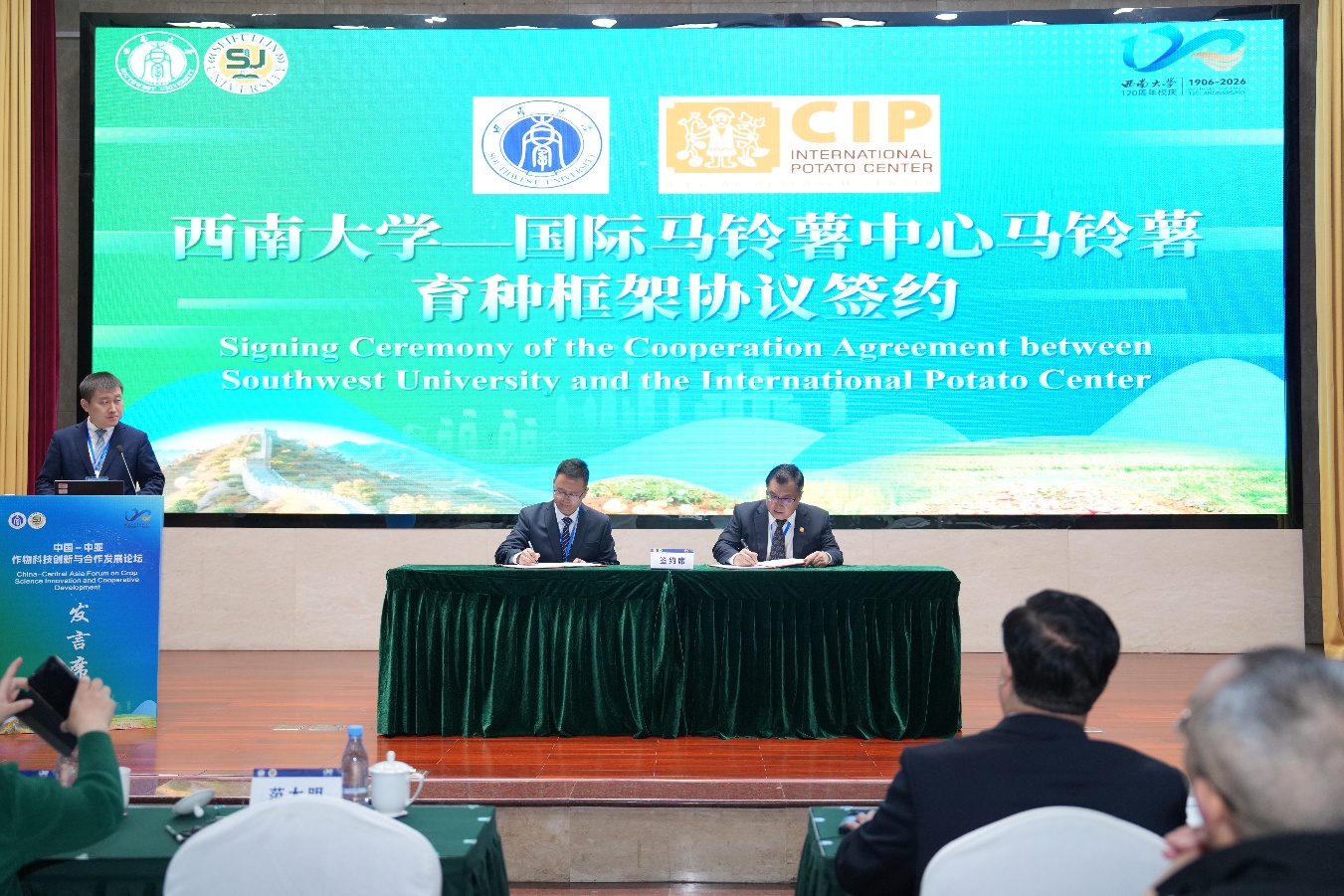 开幕式还举行了四项重要签约仪式:西南大学与加德满都大学签署联合实验室合作协议、与国际马铃薯中心签署马铃薯育种框架协议、与塔吉克斯坦国家科学院植物学、生理学与植物遗传研究所签署科学与创新合作协议、与赛福林农业技术研究大学签署中哈作物科学联合项目协议。四项合作文件的签署,标志着学校国际农业科技合作迈向新阶段,也进一步夯实了共建“一带一路”框架下中国与中亚等国家农业科技创新合作的机制化平台,将推动校际、国际组织间务实合作走向更深层次、更宽领域、更高水平。